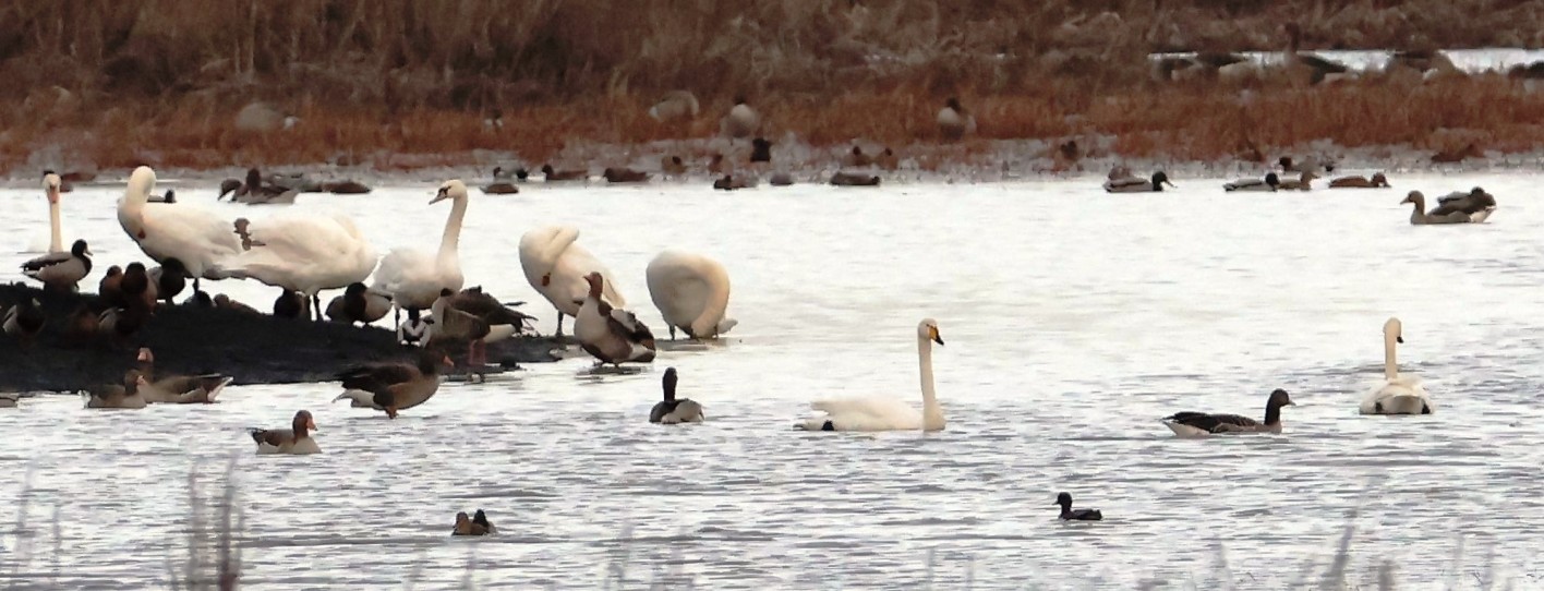 28.2.2020: 6 Entenarten rasten direkt vorm Beobchtungsturm.